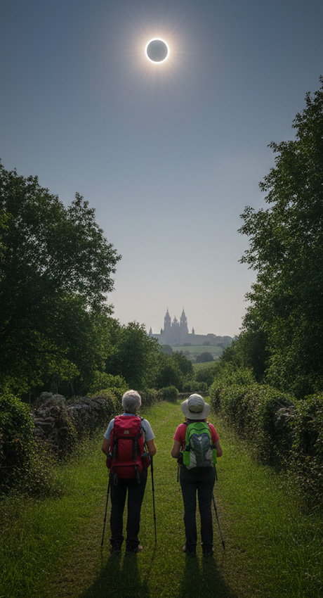 This final 100 km from Lugo to Santiago is a beautifully balanced Camino route —an easy-to-follow, mostly gentle inland walk through classic green Galicia, where wooded paths, farm country, and welcoming villages set the pace. It’s special because each day builds a quiet momentum toward Santiago, with more pilgrims on the trail and a growing sense of arrival. And on this departure, the experience is made even more memorable by coinciding with a total solar eclipse, adding a once-in-a-lifetime moment to an already unforgettable finish in Santiago’s historic heart at the Cathedral.